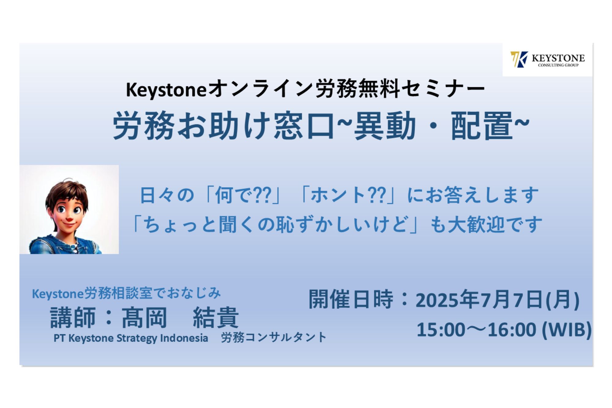 Keystoneオンライン労務無料セミナー 労務お助け窓口 ~異動・配置~